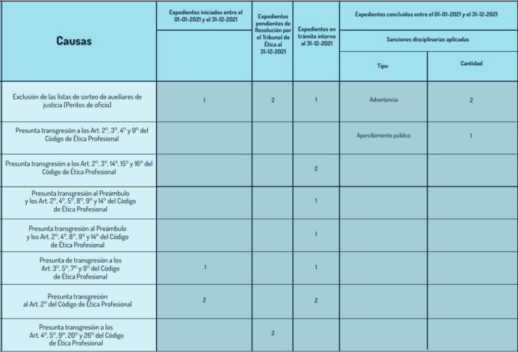 La Comisión de Ética y Disciplina del Consejo Profesional de Ciencias Económicas de la Provincia de Santa Fe, Cámara Segunda, resume los sumarios éticos considerados durante el período 01.01.2021 a 31.12.2021.