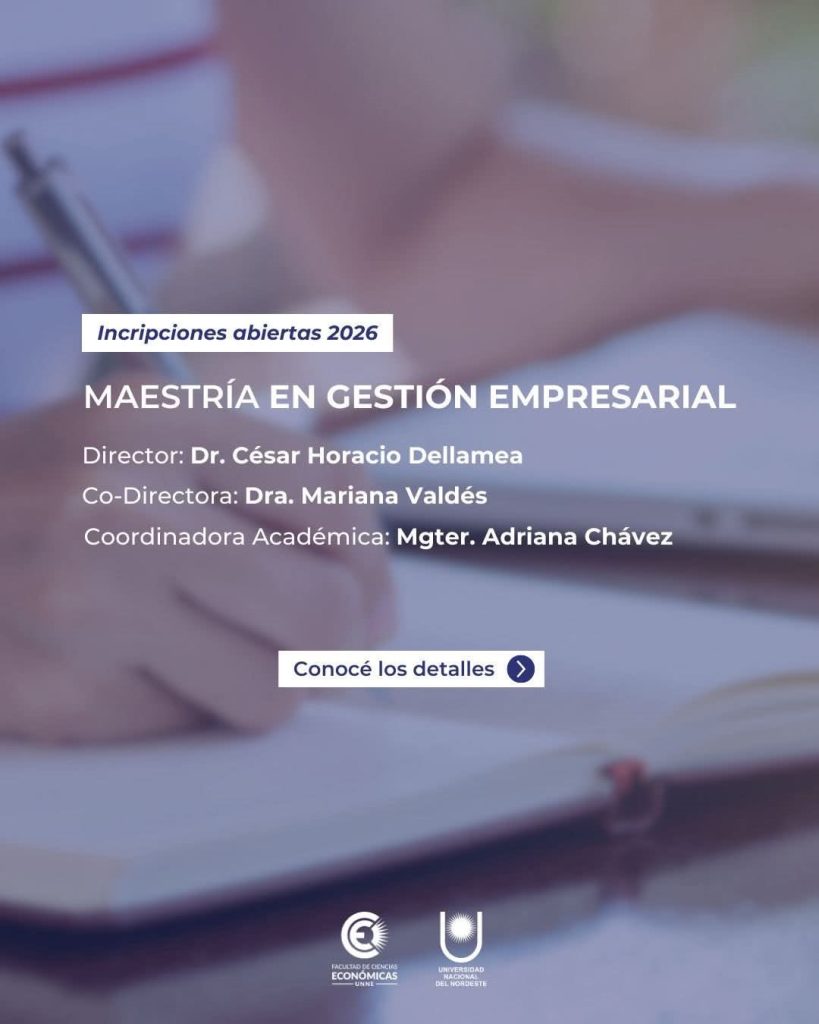La Universidad Nacional del Noreste -Facultad de Ciencias Económicas-, organiza la Maestría en Gestión Empresarial.