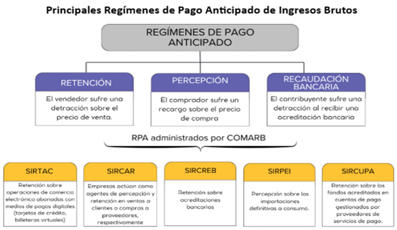 Desde el punto de vista administrativo, el IIBB implica una alta carga de cumplimiento para los contribuyentes. Cada provincia regula el tributo con criterios propios en cuanto a alícuotas, exenciones, regímenes de percepción y retención, y obligaciones formales. A esto se suman los más de 75 regímenes de pago anticipado (RPA), entre los cuales se destacan los sistemas de recaudación bancaria (SIRCREB), percepciones en compras interprovinciales y retenciones en origen. La coexistencia de estos regímenes genera asimetrías fiscales y una notoria inequidad vertical y horizontal.