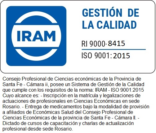 El Consejo Profesional de Ciencias Económicas de la Provincia de Santa Fe Cámara II certificó su Sistema de Gestión de Calidad de acuerdo a la norma IRAM – ISO 9001:2015.