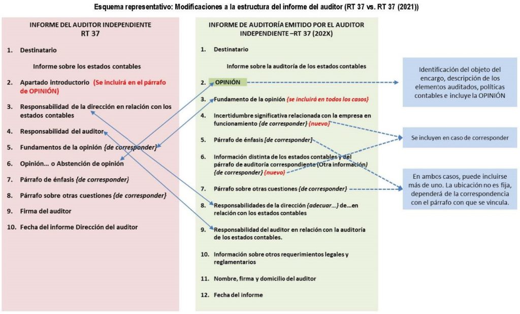 ● Con respecto al orden de los elementos del informe, el párrafo 3 de la sección III.A.ii de la Resolución Técnica N° 37 no establece un orden obligatorio, excepto para los párrafos “Opinión” y “Fundamentos de la opinión”.